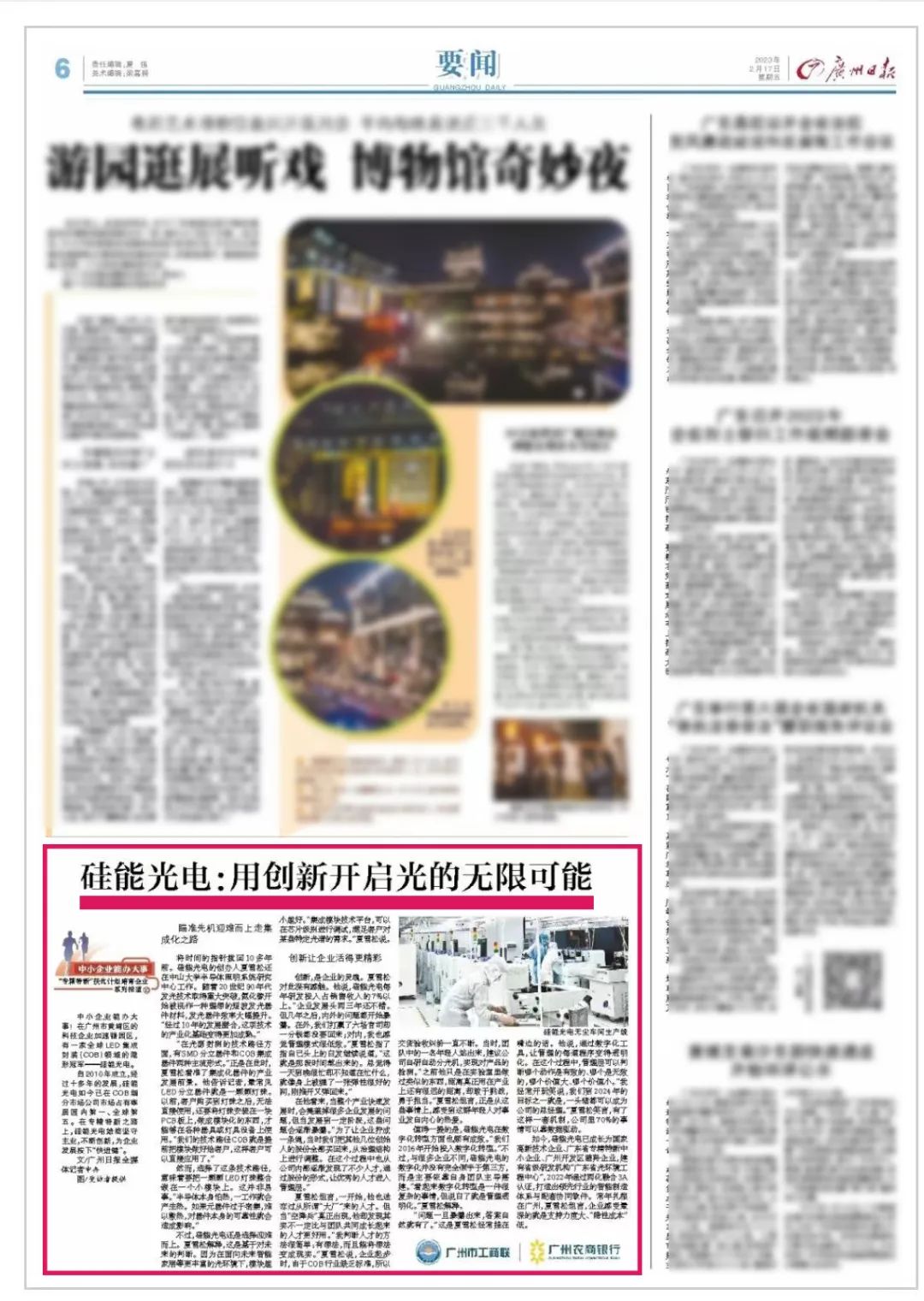 廣州日報要聞版面報道:金年会jinnian光電,用創(chuàng)新開啟光的無限可能